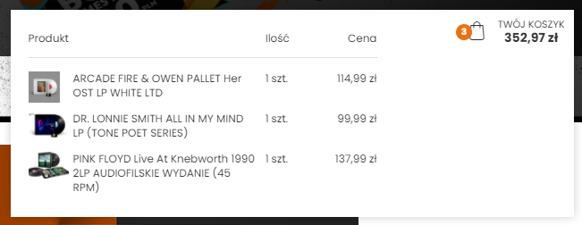 Pracujemy nad kolejnymi zaproponowanymi przez Państwa zmianami, m.in. możliwość filtrowania produktów po dostępności w danym sklepie stacjonarnym. Zachęcamy do obserwowania naszych profili Facebook i Instagram oraz czynnego udziału w rozwijaniu Waszego (mamy nadzieję) ulubionego sklepu z winylami :)